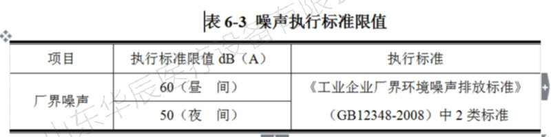 根據(jù)環(huán)評(píng)及批復(fù)要求。項(xiàng)目運(yùn)營(yíng)期噪聲應(yīng)執(zhí)行《工業(yè)企業(yè)廠界環(huán)境噪聲排放標(biāo)準(zhǔn)》(GB12348-2008)中2類標(biāo)準(zhǔn)。具體標(biāo)準(zhǔn)內(nèi)容見表6-3。