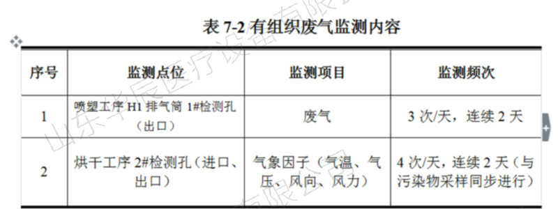 7.2.2有組織廢氣監(jiān)測(cè)點(diǎn)位、監(jiān)測(cè)因子、監(jiān)測(cè)頻次