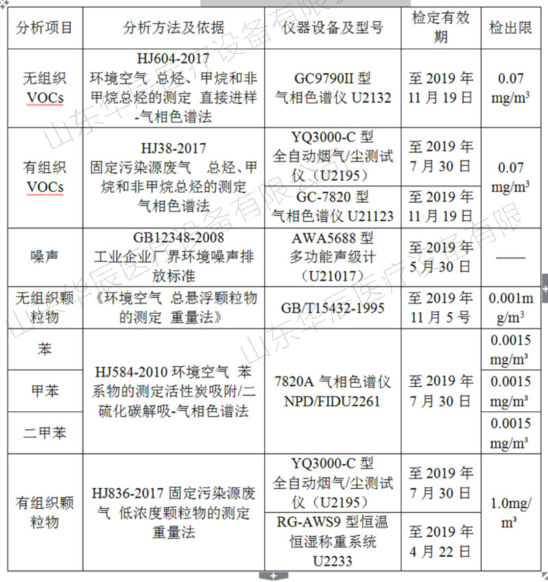 (3)山東方信環(huán)境檢測(cè)有限公司編制的關(guān)于山東華辰醫(yī)療設(shè)備有限公司年產(chǎn)1500臺(tái)醫(yī)療設(shè)備加工項(xiàng)目檢測(cè)報(bào)告表。