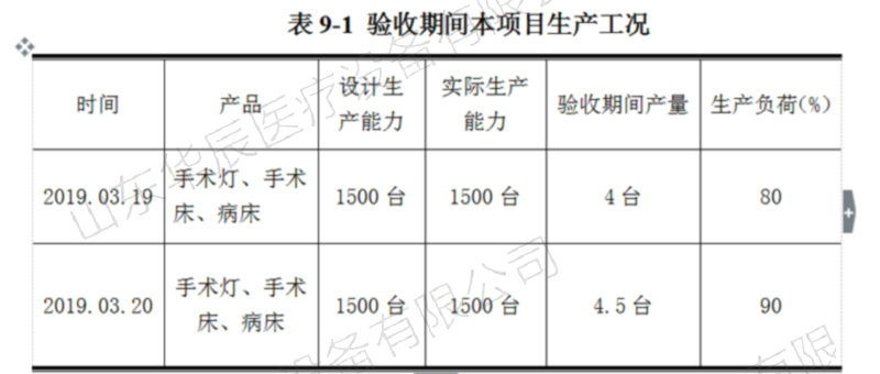 驗(yàn)收監(jiān)測(cè)期間,山東華辰醫(yī)療設(shè)備有限公司年產(chǎn)1500臺(tái)醫(yī)療設(shè)備加工項(xiàng)目項(xiàng)目生產(chǎn)負(fù)荷在80.0%-90.0%,主體工程工況穩(wěn)定、環(huán)境保護(hù)設(shè)施運(yùn)行正常,因此,本次監(jiān)測(cè)結(jié)果具有代表性,監(jiān)測(cè)結(jié)果能作為該項(xiàng)目竣工環(huán)境保護(hù)驗(yàn)收依據(jù)。