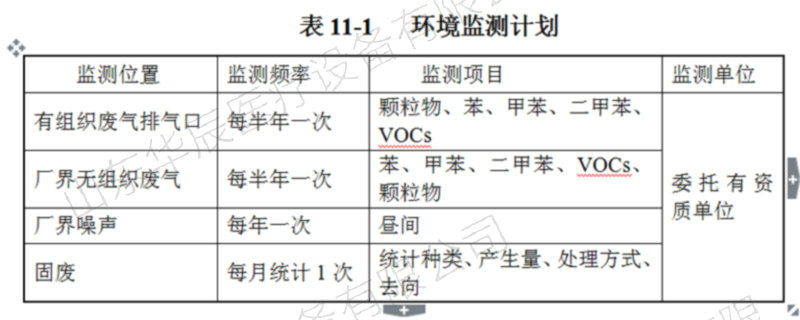 根據(jù)本企業(yè)的排污特點(diǎn)及《環(huán)境監(jiān)測(cè)工作的實(shí)施細(xì)則》,確定監(jiān)測(cè)內(nèi)容、監(jiān)測(cè)項(xiàng)目及監(jiān)測(cè)頻率。監(jiān)測(cè)制度詳細(xì)內(nèi)容見表11-1。